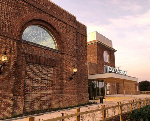 Houlton School repurposes the imposing brick transmitter building, C Station, built in 1926-29 for the GPO Rugby Radio Station, which is Grade II listed. Creative adaptation and retrofit of the historic building is combined with three state-of-the-art new blocks, to create a new 1260 place secondary school and sixth form. The school has been delivered by the master developer, Urban & Civic PLC, working directly with the DfE.
